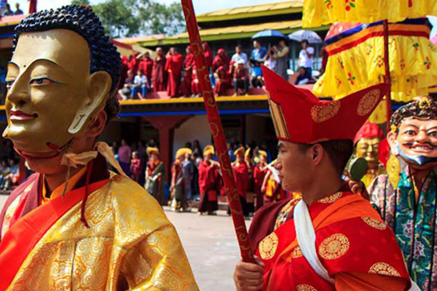 People start the day early and visit monasteries to offer prayers. Butter lamps are lit during the festival to symbolise the removal of ignorance.