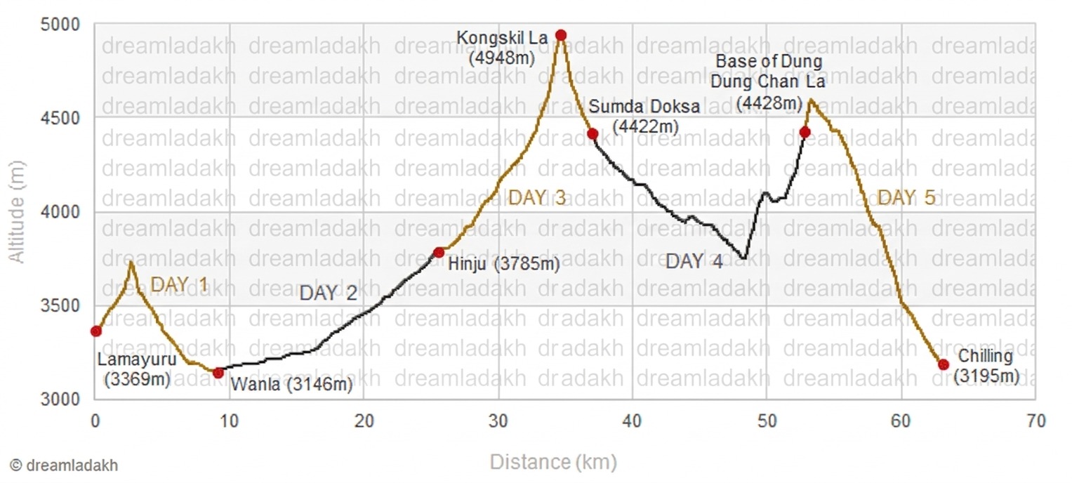 - Day 5: Sumda Doksa – Dung Dung Chan la base 4430m (4-5 hrs)
